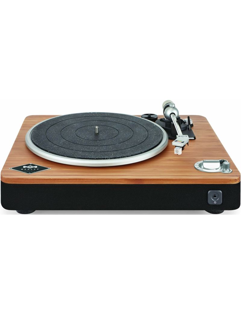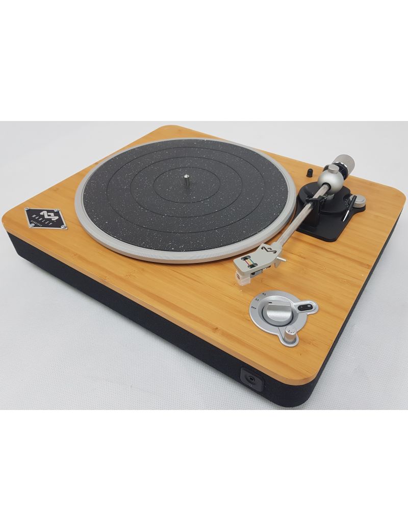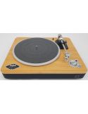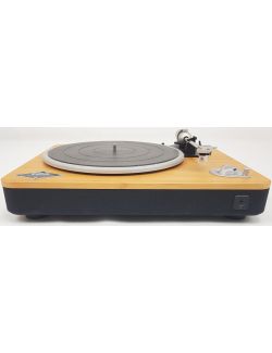 House of Marley Stir It Up Wireless to gramofon, który łączy ciepło analogu z komfortem współczesnej łączności. Konstrukcja opiera się na naturalnych materiałach — plinta z drewna bambusowego prezentuje się szlachetnie i tłumi niepożądane drgania, a stalowy talerz oraz ramię ze stali nierdzewnej zapewniają stabilność oraz precyzję prowadzenia igły. To połączenie formy i funkcji tworzy podstawę, dzięki której winyle brzmią czysto i pełnie, z bogatą średnicą i miękkim basem charakterystycznym dla czarnej płyty.