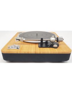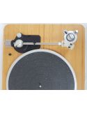Sercem urządzenia jest napęd paskowy z AutoStart/Stop, który delikatnie rozpędza talerz i automatycznie zatrzymuje odtwarzanie po zakończeniu płyty, ograniczając zużycie igły i wygodnie domykając odsłuch. Gramofon obsługuje prędkości 33 i 45 obr./min, a fabrycznie montowana wkładka MM (ATSt00) pozwala rozpocząć słuchanie bez dodatkowych regulacji. Dla miłośników czystego, dynamicznego dźwięku przygotowano wbudowany przedwzmacniacz — jednym przełącznikiem można wybrać wyjście PHONO do współpracy z zewnętrznym preampem lub poziom LINE do bezpośredniego podłączenia aktywnych głośników czy soundbara.