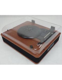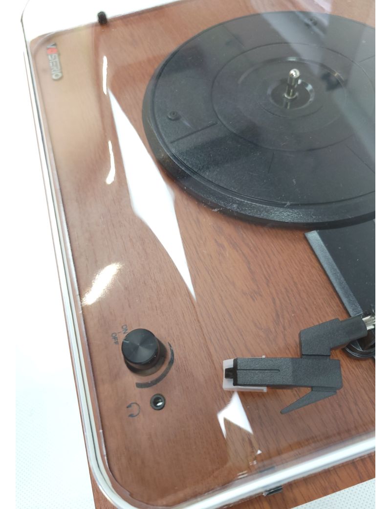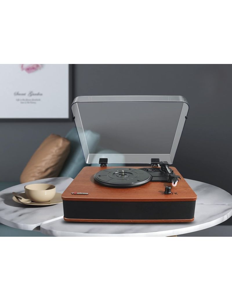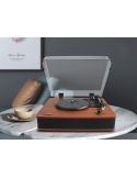Model obsługuje trzy prędkości obrotów – 33 1/3, 45 oraz 78 RPM, co pozwala odtwarzać płyty w różnych formatach: 7", 10" oraz 12". Wbudowane głośniki stereo Hi-Fi zapewniają pełny, naturalny dźwięk z wyraźnym basem i czystymi wysokimi tonami, a możliwość podłączenia zewnętrznych kolumn przez wyjście RCA umożliwia dalsze rozszerzenie jakości odsłuchu. Wbudowany wzmacniacz i dopracowana konstrukcja pozwalają cieszyć się muzyką bez dodatkowych akcesoriów.