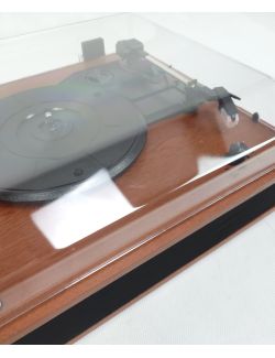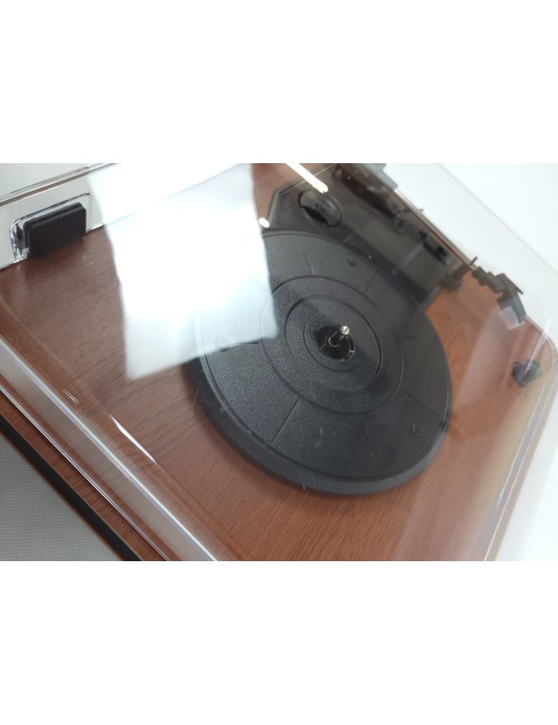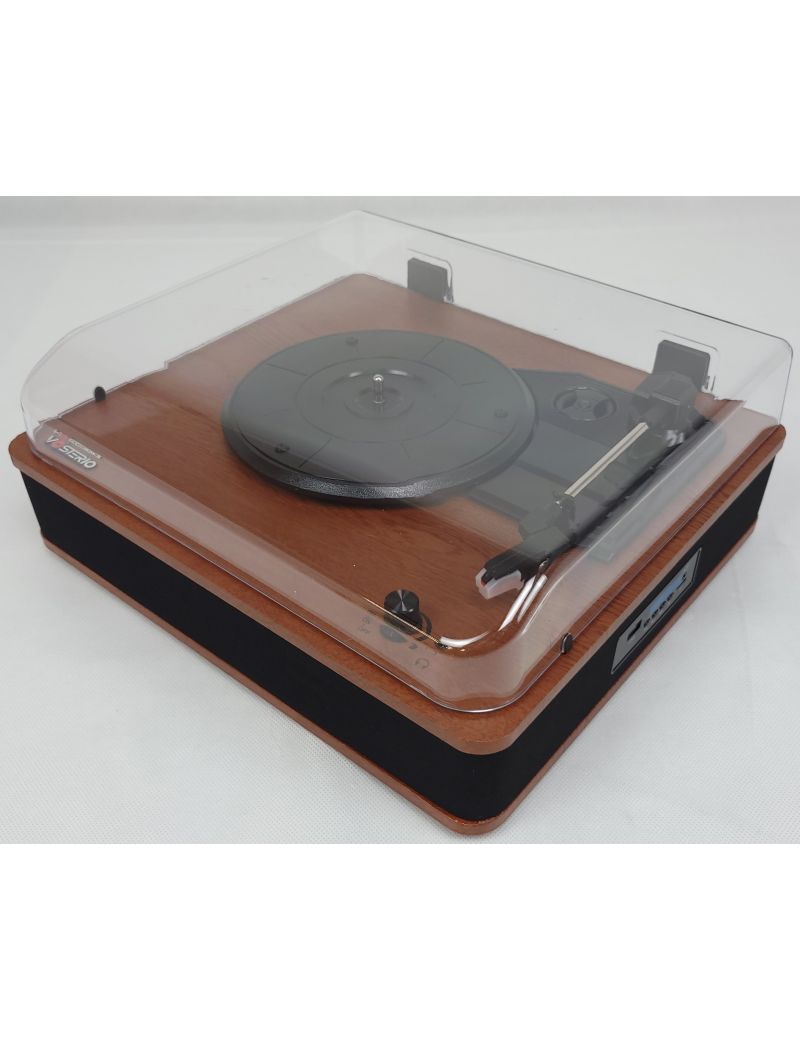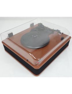 Vosterio B-660 Brown to wszechstronny gramofon w stylu retro, który doskonale łączy klasyczną estetykę z nowoczesną technologią. Eleganckie, drewniane wykończenie w kolorze brązowym nadaje mu ciepły i ponadczasowy charakter, a solidna konstrukcja z systemem redukcji wibracji gwarantuje stabilną pracę i czyste brzmienie. To urządzenie nie tylko odtwarza muzykę z winyli, lecz także oferuje szereg dodatkowych funkcji, które czynią go kompletnym centrum domowej rozrywki.