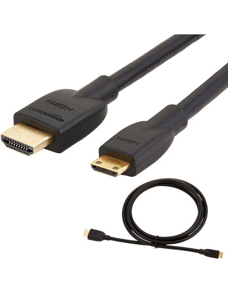 🎬 Wysokiej jakości kabel Mini-HDMI do HDMI marki Amazon Basics, stworzony do wygodnego podłączania aparatów cyfrowych, kamer, kamer sportowych oraz innych urządzeń z wyjściem Mini-HDMI (typ C) do telewizora, monitora lub projektora z portem HDMI (typ A). Jeden kabel – obraz i dźwięk w doskonałej jakości.