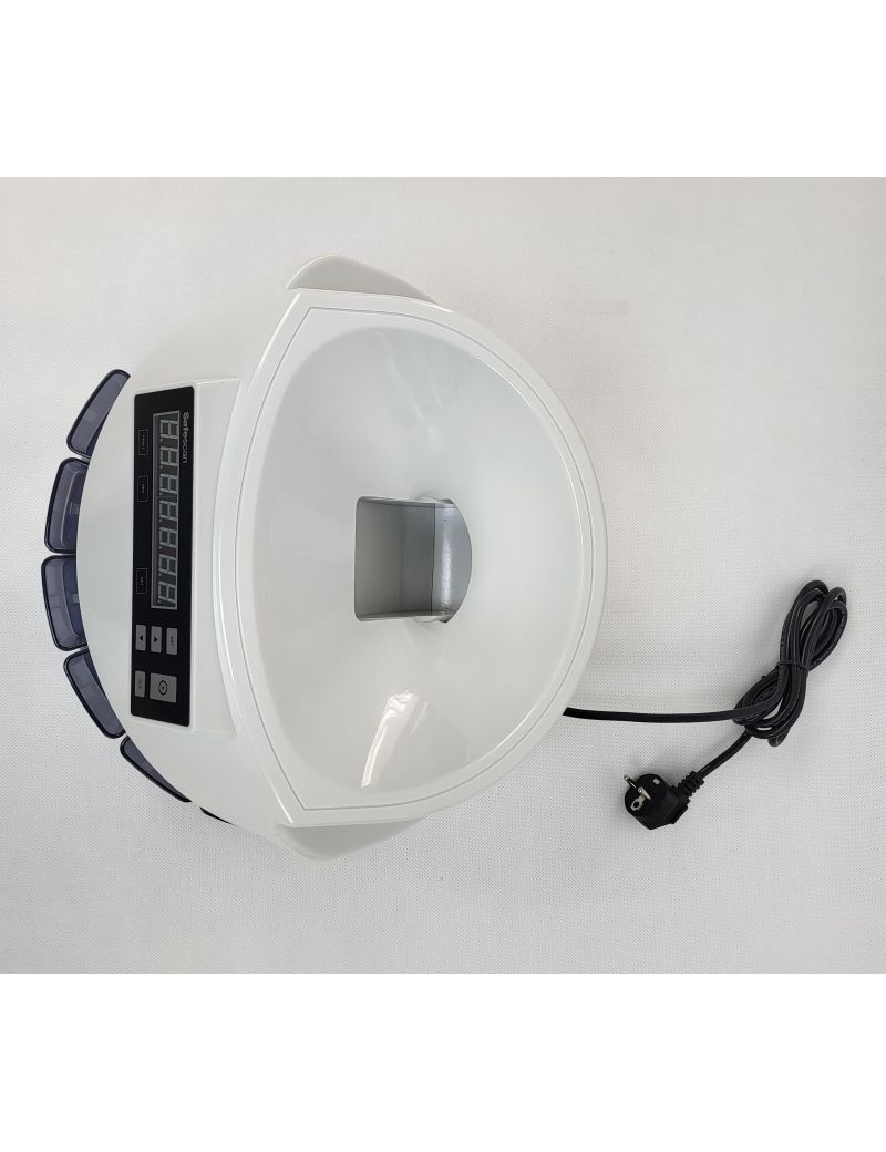 Dzięki 1250 praca zliczania banknotów odbywa się szybciej. Wystarczy nacisnąć przycisk „batch” i wprowadzić liczbę monet w każdym nominale, a następnie nacisnąć przycisk start. 1250 automatycznie zatrzyma się w momencie, gdy w pojemniku znajdzie się wymagana liczba monet. Trudno o szybszy sposób przygotowania rolek, depozytów bankowych czy szuflad kasowych! Pojemny podajnik może pomieścić 500 monet, a prędkość liczenia wynosząca 220 monet na minutę sprawia, że Safescan 1250 przeliczy całą zawartość szuflady kasowej w mgnieniu oka! Wystarczy wsypać wszystkie monety z kasy bądź woreczka do podajnika – bez potrzeby ich sortowania – a następnie nacisnąć przycisk start.