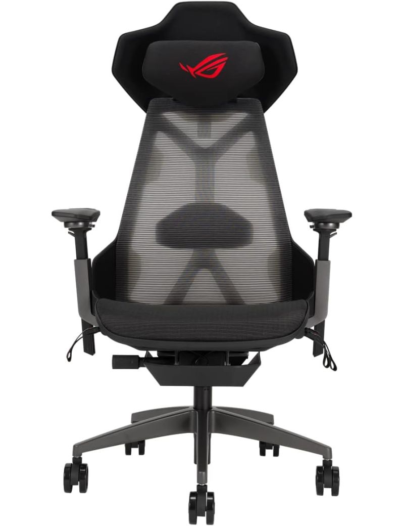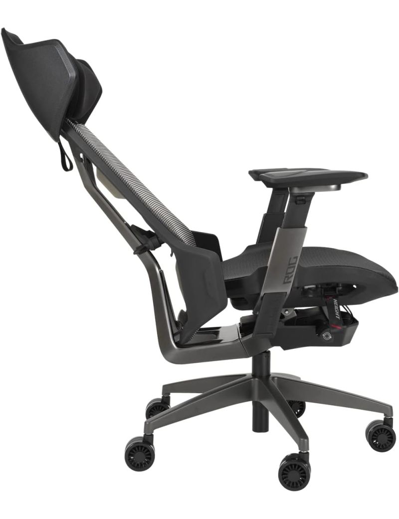 ASUS ROG Destrier Ergo to krzesło gamingowe zaprojektowane z myślą o graczach, którzy wymagają absolutnej perfekcji w każdym detalu. Już na pierwszy rzut oka przyciąga uwagę swoim nowoczesnym, futurystycznym designem, w którym dominuje głęboka czerń, nadająca mu prestiżowego charakteru i elegancji. To nie jest zwykłe krzesło do grania – to konstrukcja, która łączy w sobie profesjonalną ergonomię, wysokiej klasy materiały i innowacyjne rozwiązania, czyniąc z codziennych sesji gamingowych prawdziwe doświadczenie premium.