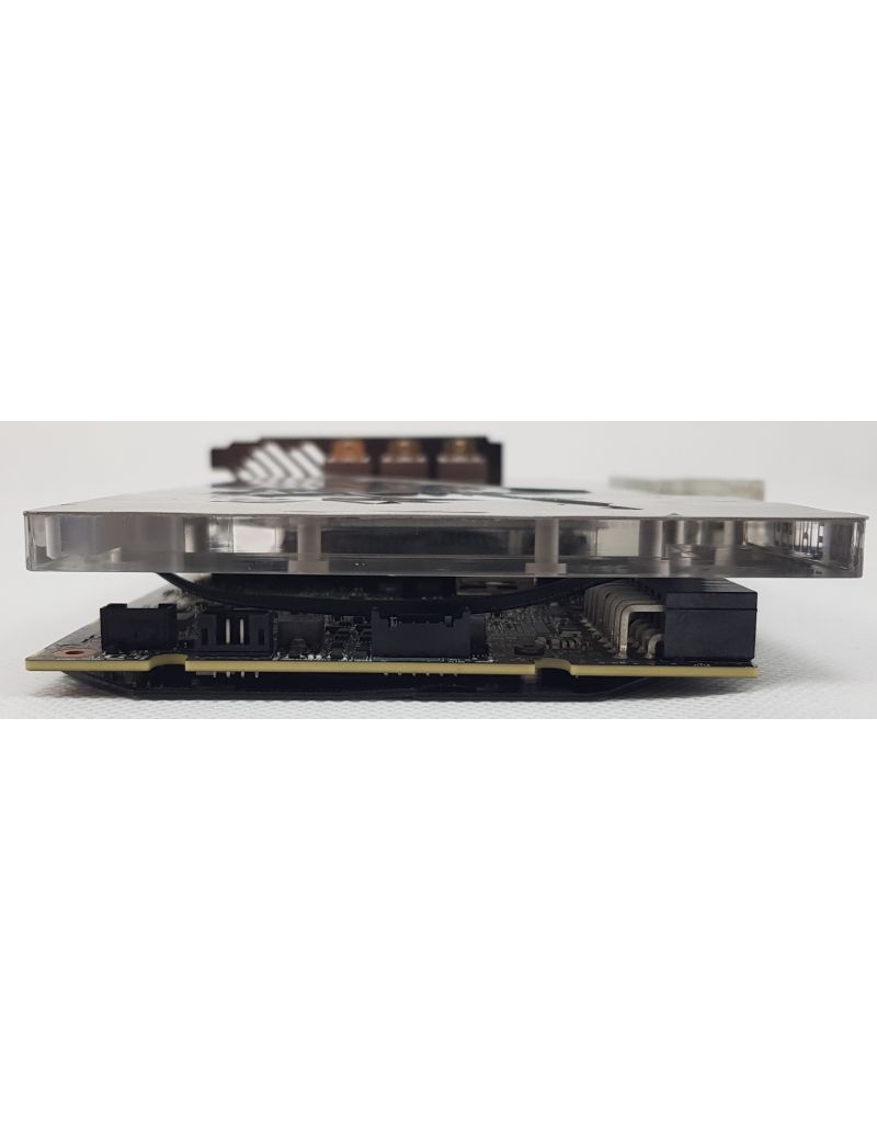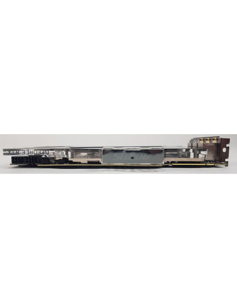 Dodatkowym atutem konstrukcji jest efektowne podświetlenie LED, które można konfigurować zgodnie z własnymi preferencjami, integrując kartę z resztą systemu RGB w komputerze. Zasilanie odbywa się za pomocą dwóch 8-pinowych wtyczek, a zalecana moc zasilacza to minimum 650 W.