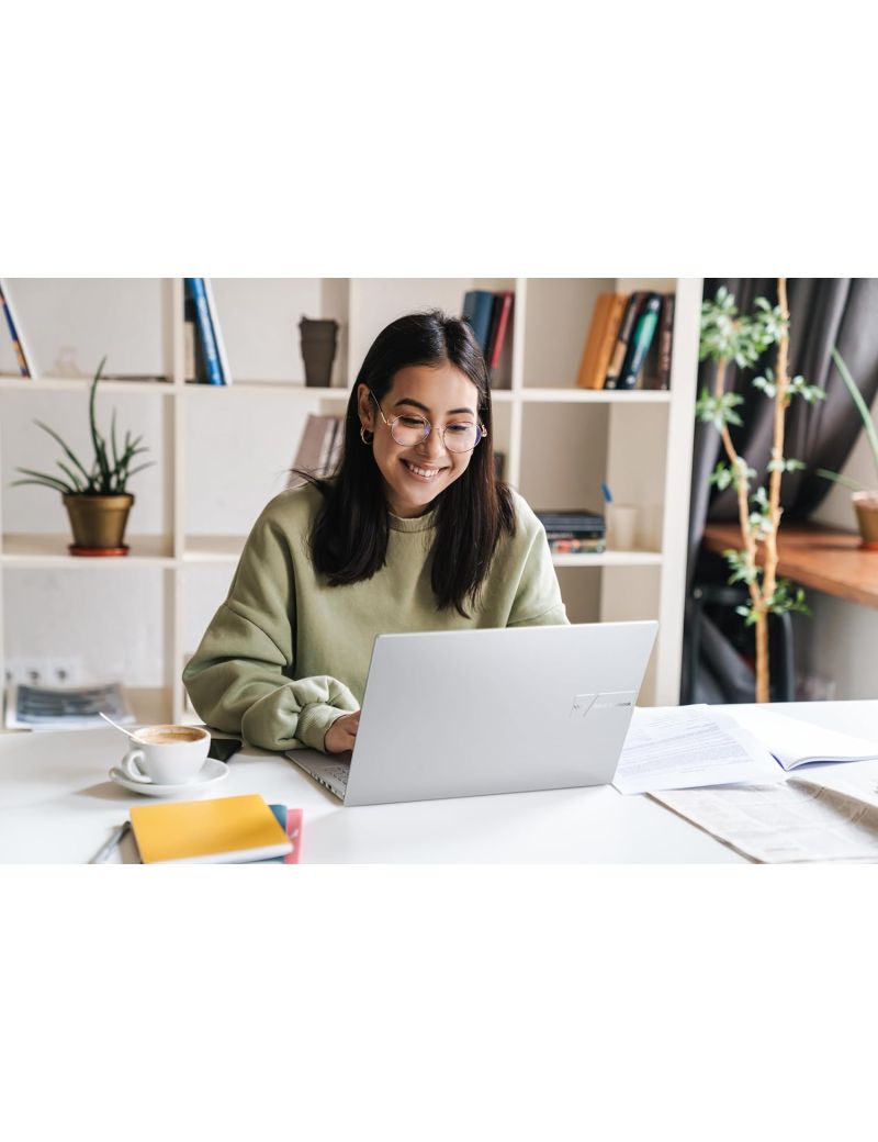 Asus Vivobook 16 oferuje pełne zaplecze nowoczesnych złączy, w tym USB-C, USB 3.2, HDMI oraz gniazdo audio. Laptop posiada także wbudowaną kamerę HD z funkcją rozmycia tła i zabezpieczenie prywatności w postaci fizycznej przesłony. Podświetlana klawiatura typu chiclet zwiększa komfort użytkowania w ciemnych pomieszczeniach, a precyzyjny touchpad z obsługą gestów umożliwia płynną nawigację bez konieczności użycia myszy.