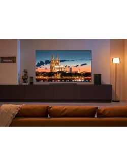 Dźwięk to kolejny mocny atut tego modelu. System audio opracowany przez Onkyo z obsługą Dolby Atmos 2.1.2 otacza widza przestrzennym brzmieniem, przenosząc w sam środek akcji filmowej lub koncertu. Dzięki temu każdy dialog, efekt specjalny czy nuta muzyki brzmią klarownie i naturalnie.