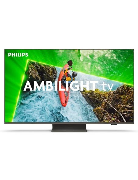 Niepowtarzalnym atutem tego modelu jest Ambilight 3-stronny, czyli inteligentne oświetlenie LED, które rozszerza obraz poza ramy ekranu. Efekt świetlnej poświaty idealnie dopasowującej się do kolorów na ekranie sprawia, że telewizor wydaje się większy, a każdy seans filmowy czy rozgrywka w gry staje się bardziej wciągająca. Funkcje takie jak Ambilight Muzyka, tryb Lounge, AmbiSleep czy animacje FTI pozwalają dostosować oświetlenie do nastroju, tworząc wyjątkową atmosferę w salonie.