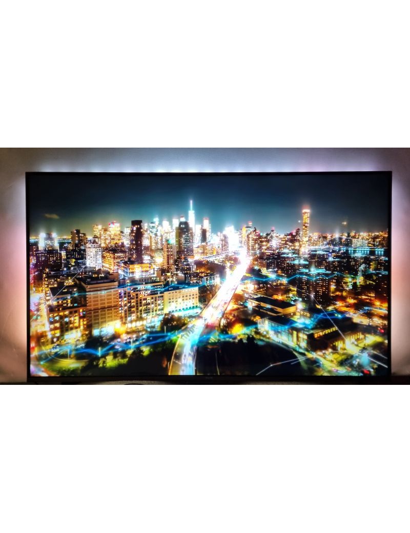 Niezwykłe wrażenia wizualne dodatkowo potęguje charakterystyczna dla Philips technologia Ambilight. Emitowane za ekranem światło dynamicznie dopasowuje się do wyświetlanej treści, tworząc unikalną atmosferę i wizualnie rozszerzając obraz poza ramy ekranu. To innowacyjne rozwiązanie wciąga widza w sam środek akcji i sprawia, że każda scena staje się jeszcze bardziej angażująca.