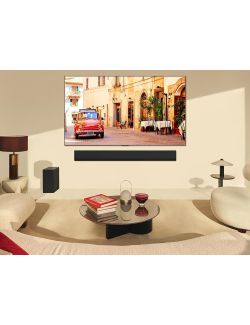 Telewizor zachwyca także dźwiękiem. Wbudowany system 4.2 o mocy 60 W z technologią Dolby Atmos otacza widza przestrzennym brzmieniem, tworząc wrażenie zanurzenia w akcji. AI Sound Pro wykorzystuje sztuczną inteligencję, aby analizować treści i dostosowywać dźwięk do rodzaju odtwarzanego materiału, generując efekt wirtualnego systemu 11.1.2. AI Acoustic Tuning automatycznie kalibruje akustykę pomieszczenia, gwarantując idealne wrażenia niezależnie od miejsca oglądania. Funkcje takie jak Clear Voice Pro poprawiają zrozumiałość dialogów, a Bluetooth Surround Ready pozwala łatwo stworzyć bezprzewodowy system kina domowego.